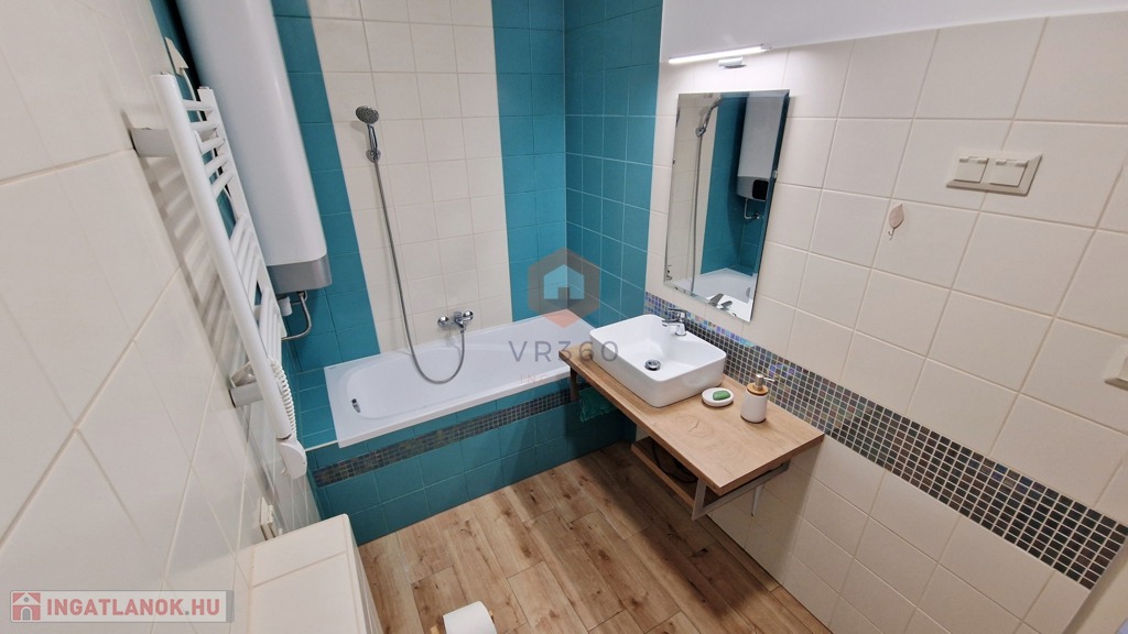 Fürdő: villanybojler biztosítja a melegvizet