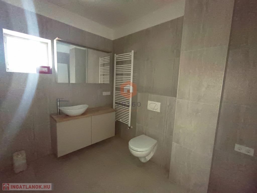 2 fürdőszoba, egy zuhanyzós, a legnagyobb szobából nyílik. A nagyobb fürdőszobában kád, zuhanyzó és WC is helyett kapott.