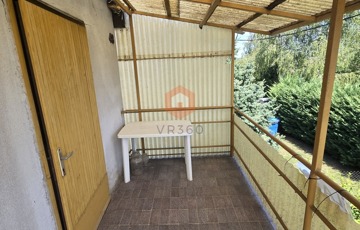A ház fa nyílászárókkal, redőnnyel van felszerelve.